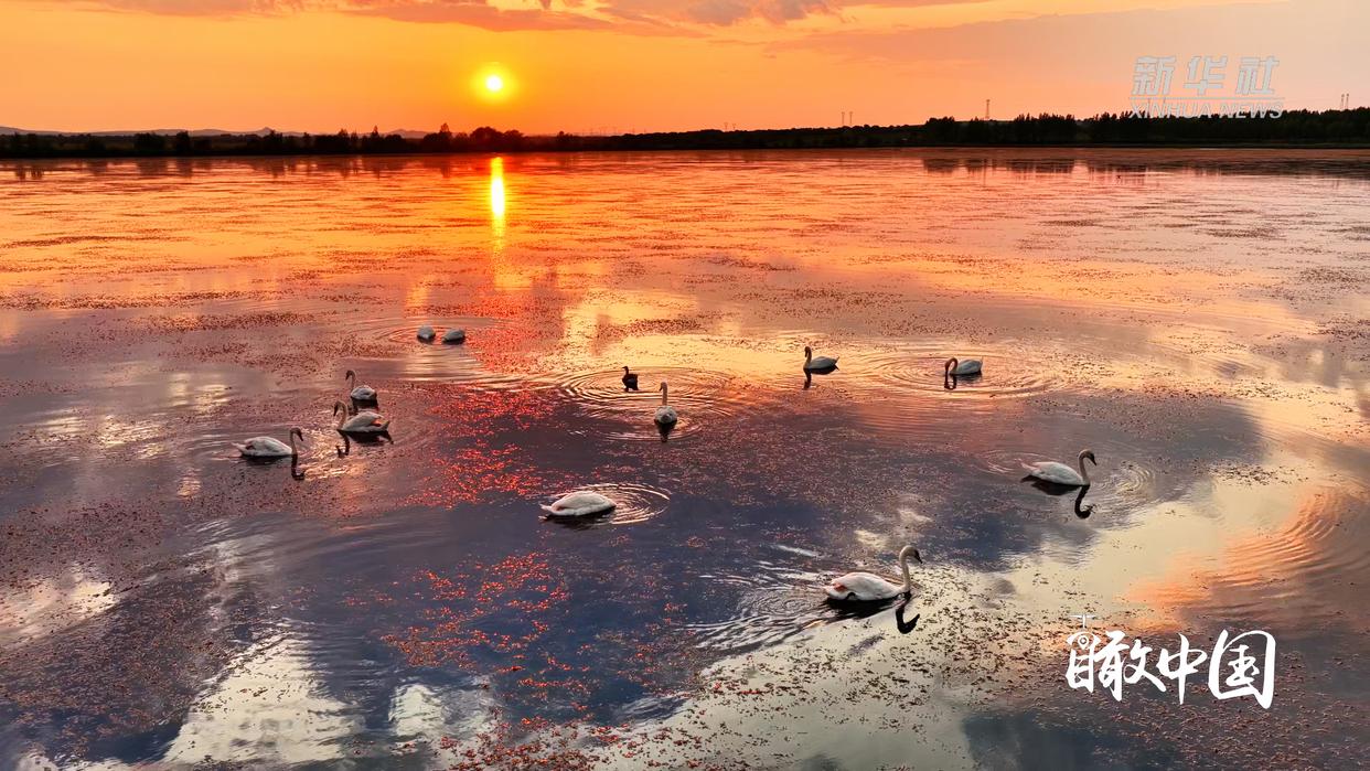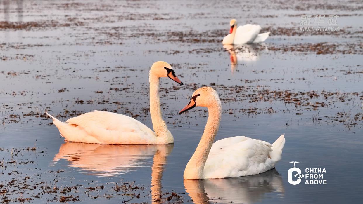 天鹅的身影在波光中摇曳,或悠然游弋,或静卧休憩,与周边的湿地生态相映成趣,构成一幅灵动绝美的自然画卷。