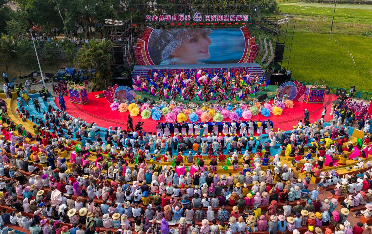 4月19日在海南省琼海市会山镇拍摄的“三月三”活动现场(无人机照片)。新华社发(蒙钟德 摄)