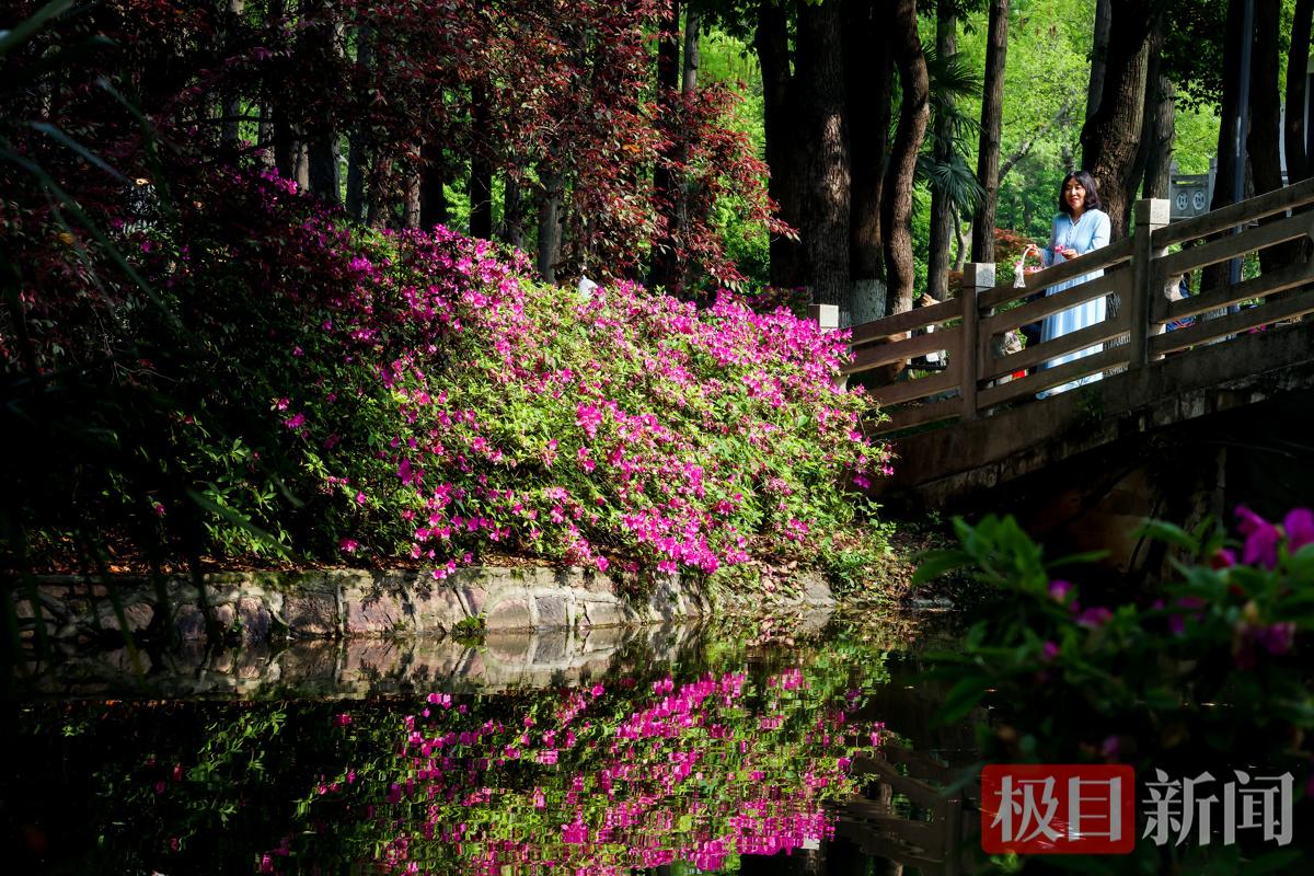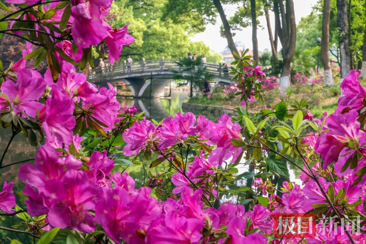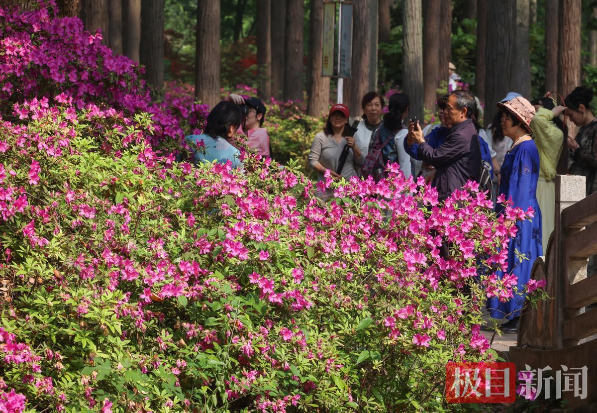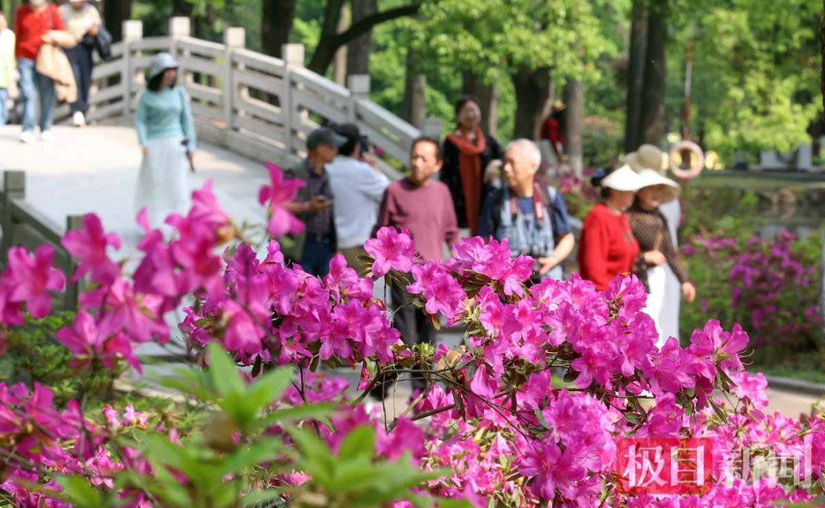 该园杜鹃包括春鹃、夏鹃、东鹃、西鹃四大品系,眼下盛开最多的是春鹃。走进园内,沿公园主环路、溪流边等区域,深浅不一的玫红、粉白、紫红花朵层层叠叠,宛如绚烂云霞铺满山坡,营造出步移景异的观赏效果,形成丰富的视觉层次,吸引众多市民游客驻足拍照。