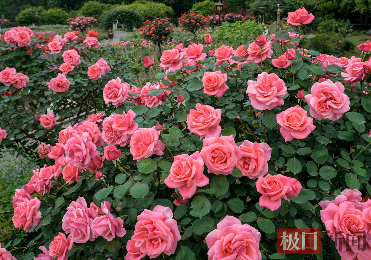 除有大片的月季园外,公园还在入口处、绿化带、中心转盘、阳光草坪、停车场护栏等处,均新栽了丰硕的树状月季或浪漫的藤本月季。正在盛开的月季花色各异,大的如娃娃的笑脸,小的如珠花般精致小巧,姿态万千,整个月季园透出唯美和浪漫。