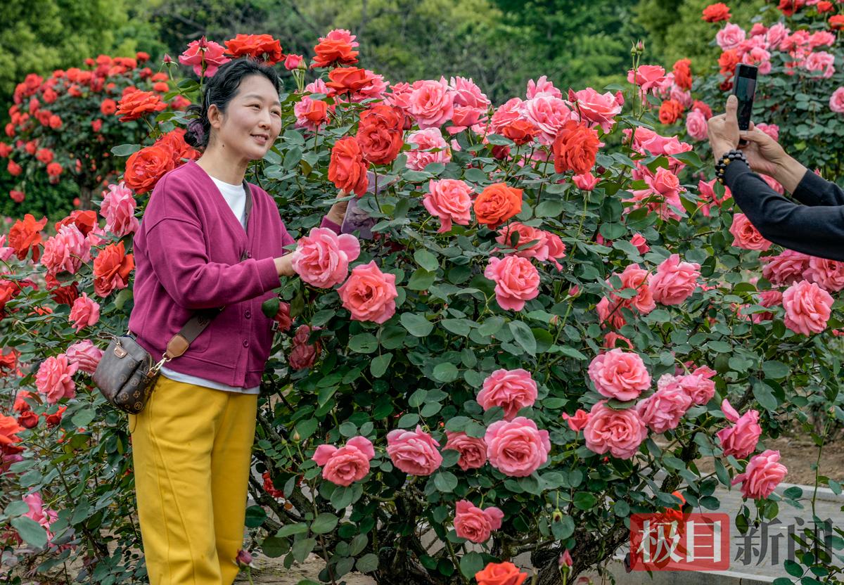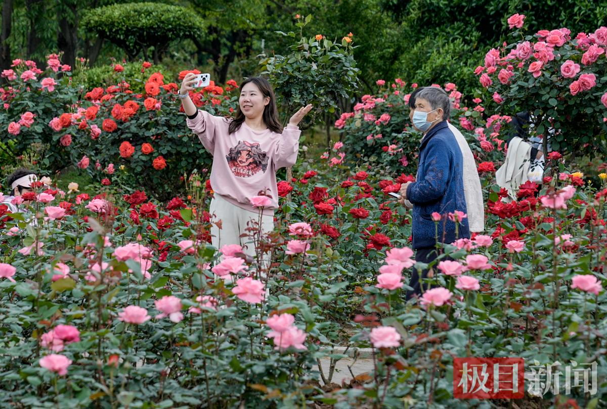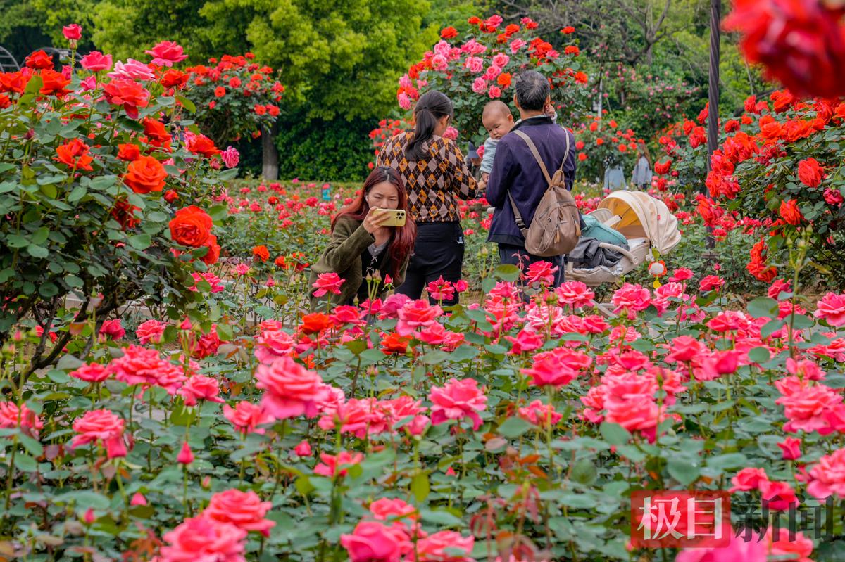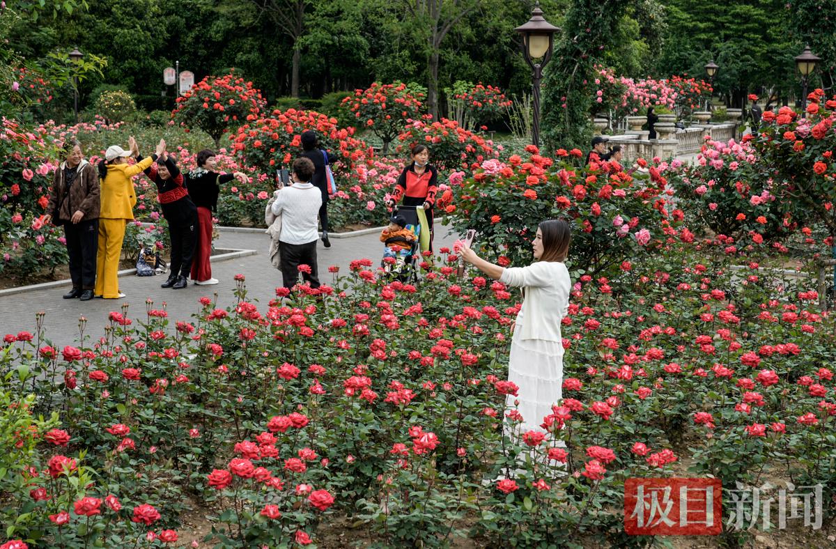 4月21日,武汉市和平公园的月季花正在次第绽放,形成大片繁花似锦的月季花海,吸引众多市民游客慕名前来打卡拍照。据悉,和平公园拥有120多个品种、6.5万株月季,是武汉市月季主题的公园。