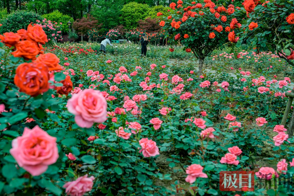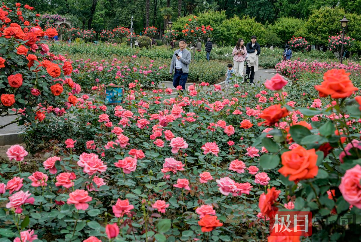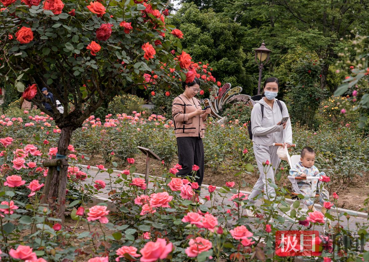4月21日,武汉市和平公园的月季花正在次第绽放,形成大片繁花似锦的月季花海,吸引众多市民游客慕名前来打卡拍照。据悉,和平公园拥有120多个品种、6.5万株月季,是武汉市月季主题的公园。