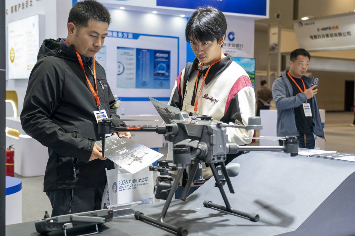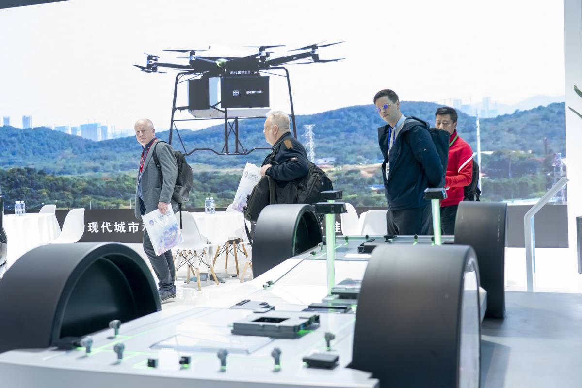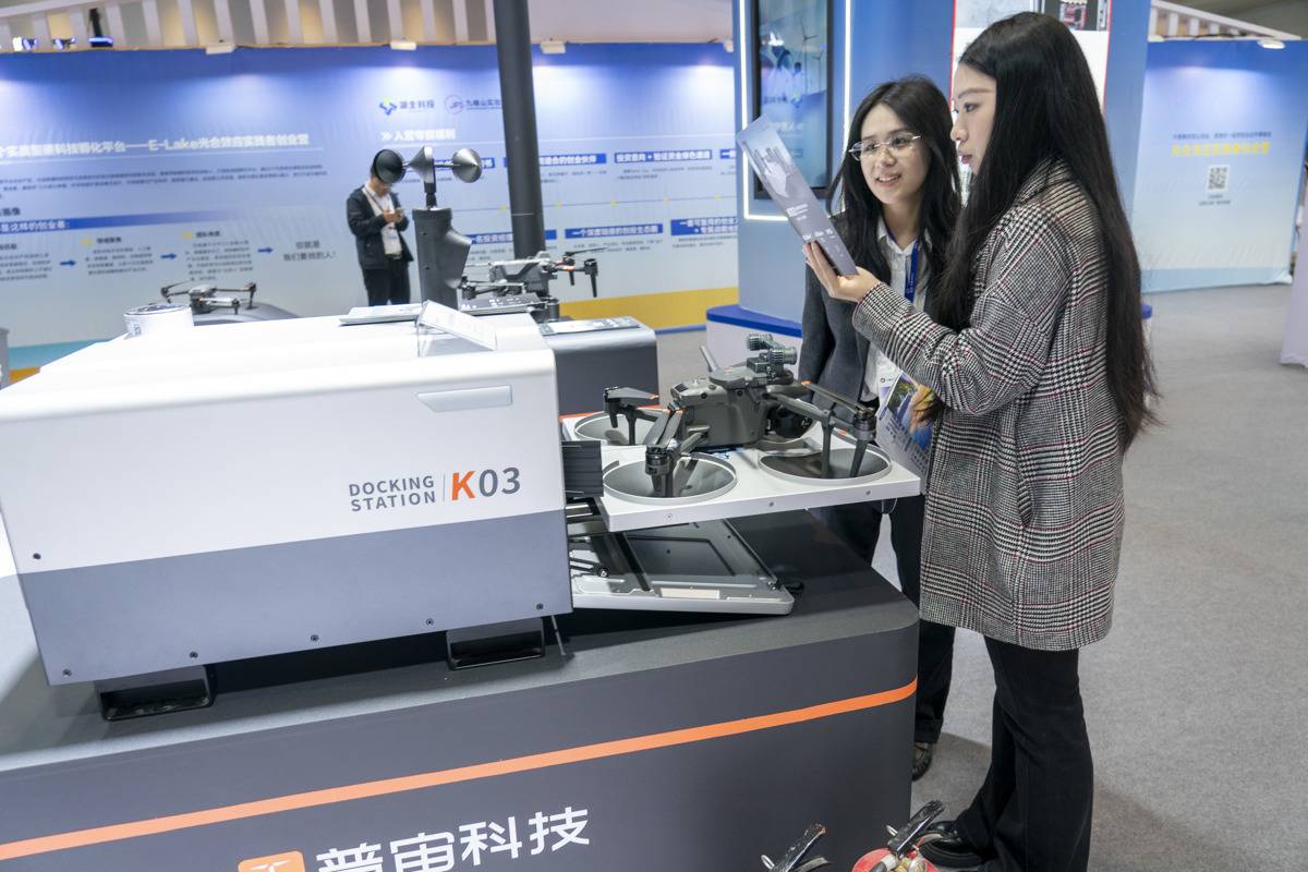 观众参观普宙科技展台的应用无人机。