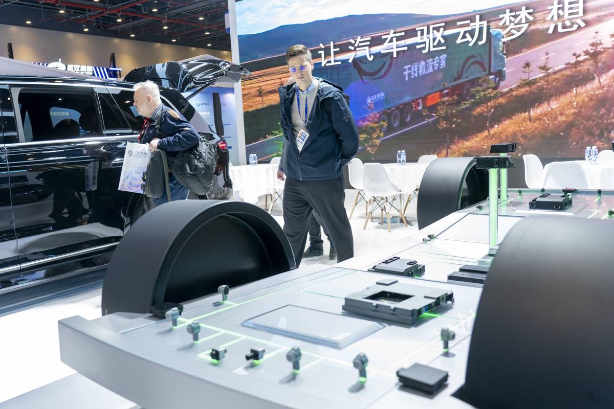 外国观众参观东风岚图车规级传感器。