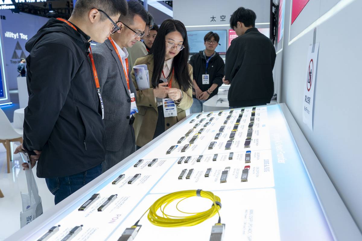 华工正源展台展出的各种规格的光模块。