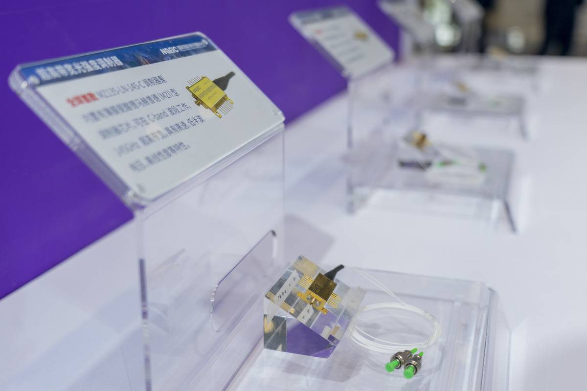 国家信息光电子创新中心展出的全球首款超高宽带光强度调制器。