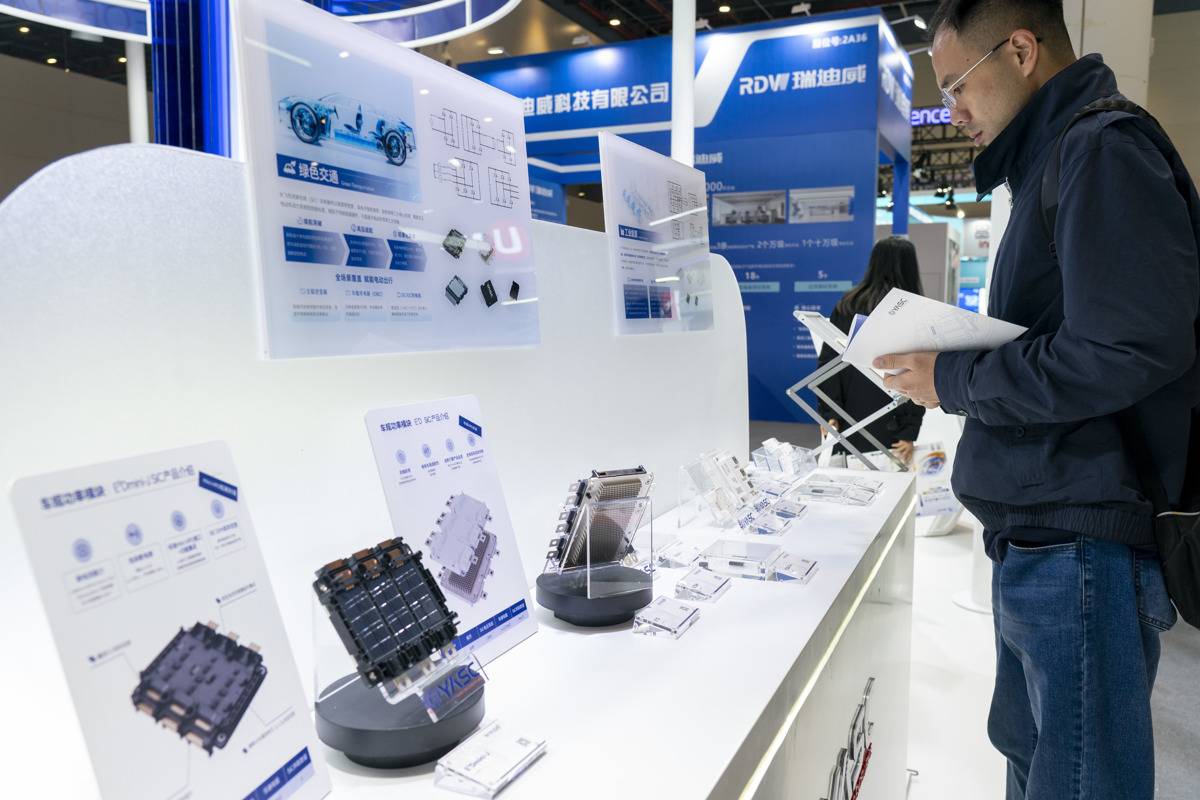 长飞先进展台,观众参观车规功率模块。