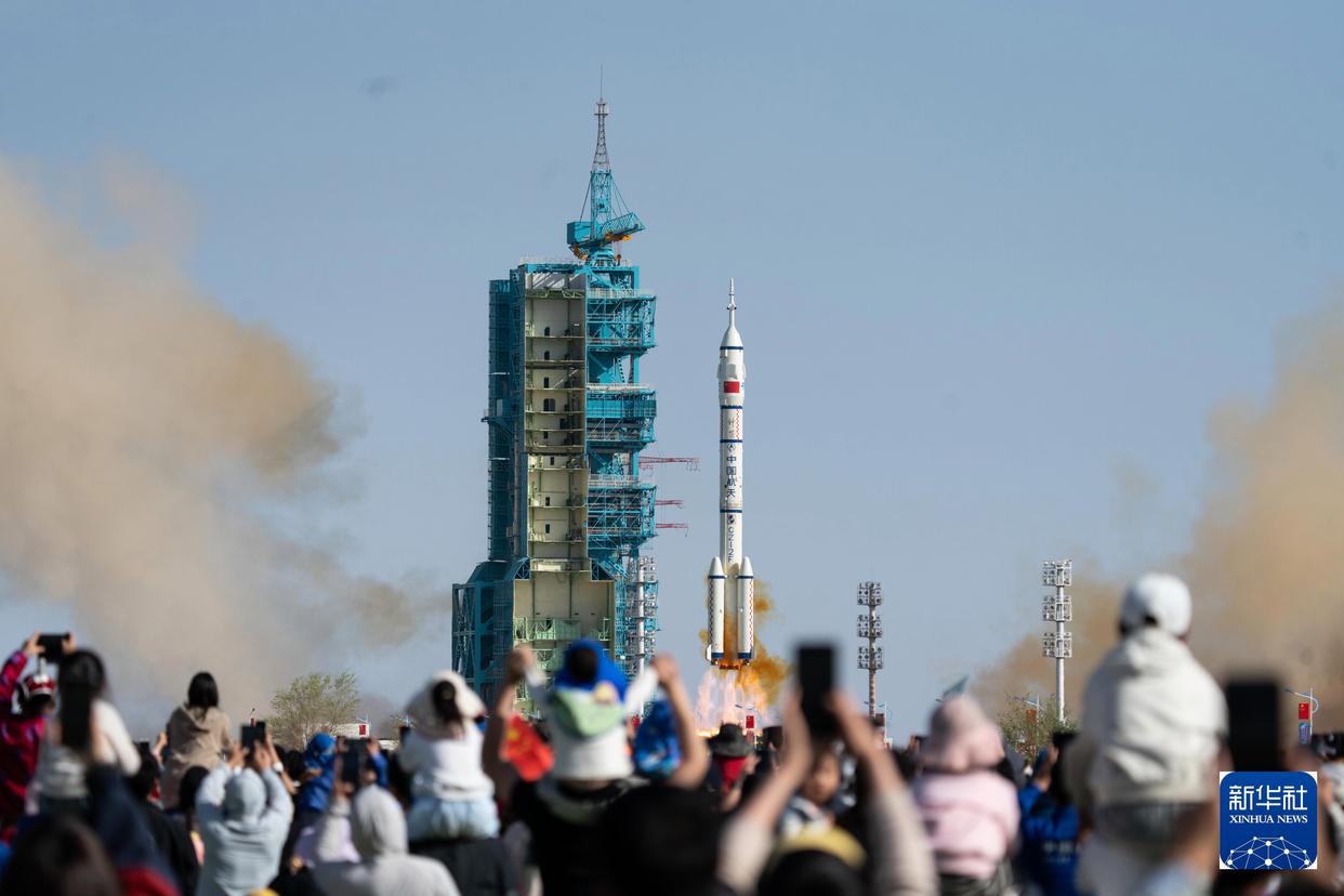 2024年4月25日,搭载神舟十八号载人飞船的长征二号F遥十八运载火箭在酒泉卫星发射中心点火发射。新华社记者 连振 摄