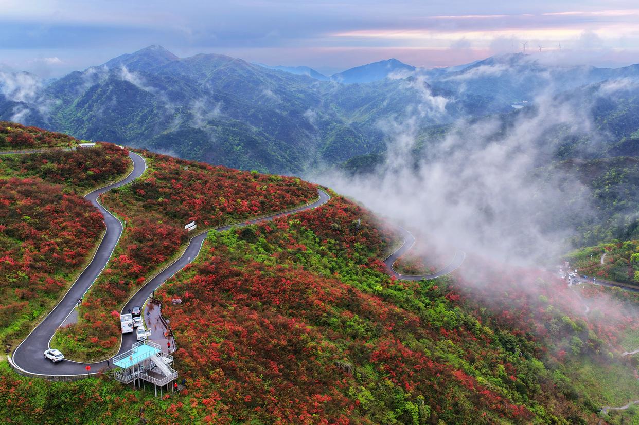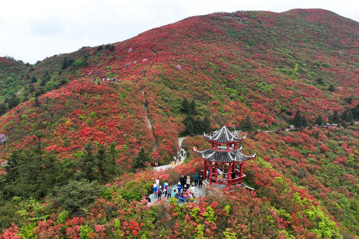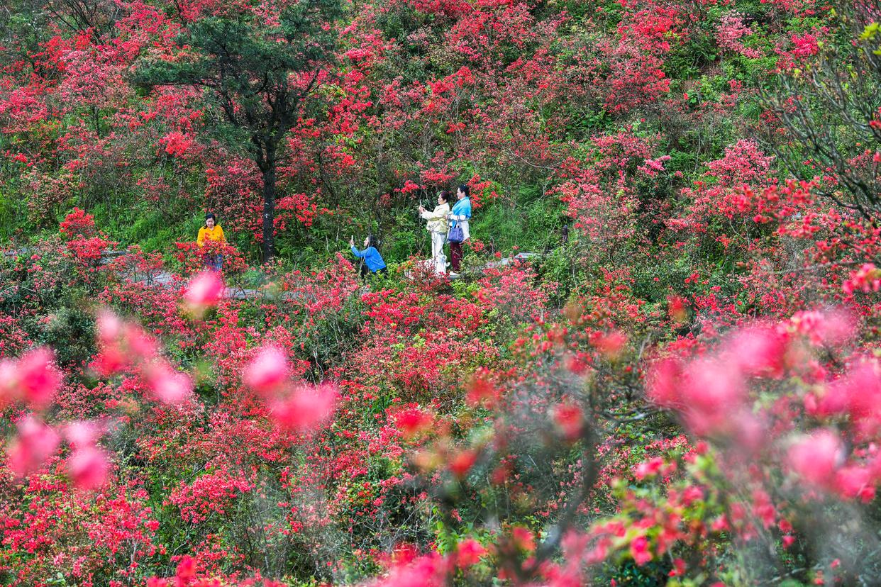 时下,多地野生杜鹃迎来盛花期,漫山杜鹃绚烂如霞,吸引不少游客前来赏花游玩。