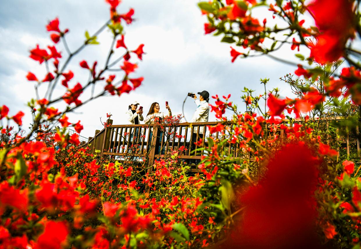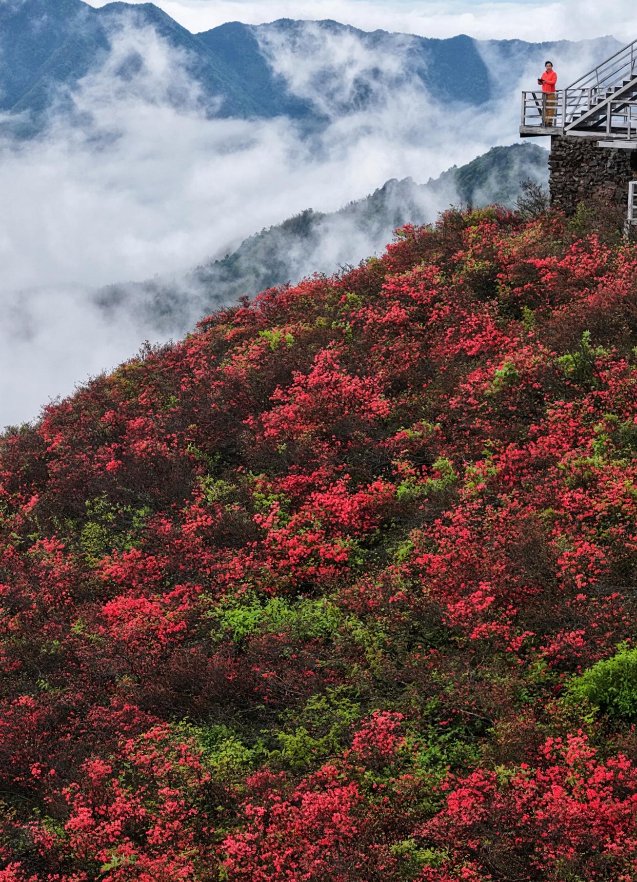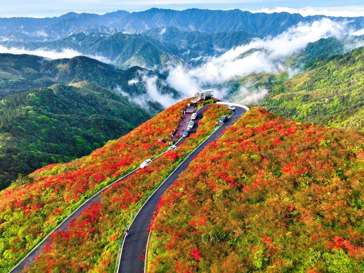 时下,多地野生杜鹃迎来盛花期,漫山杜鹃绚烂如霞,吸引不少游客前来赏花游玩。