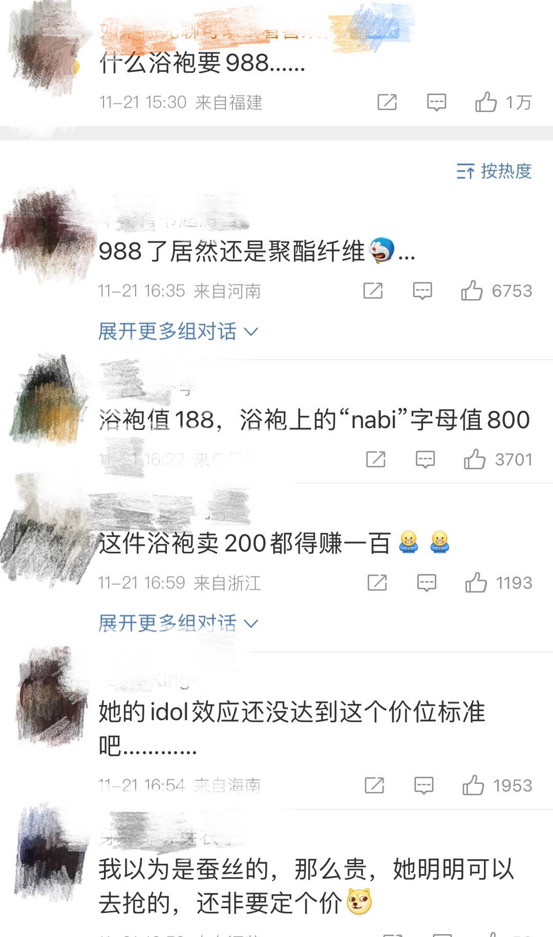 86%聚酯纤维的浴袍定价988元 被网友质疑