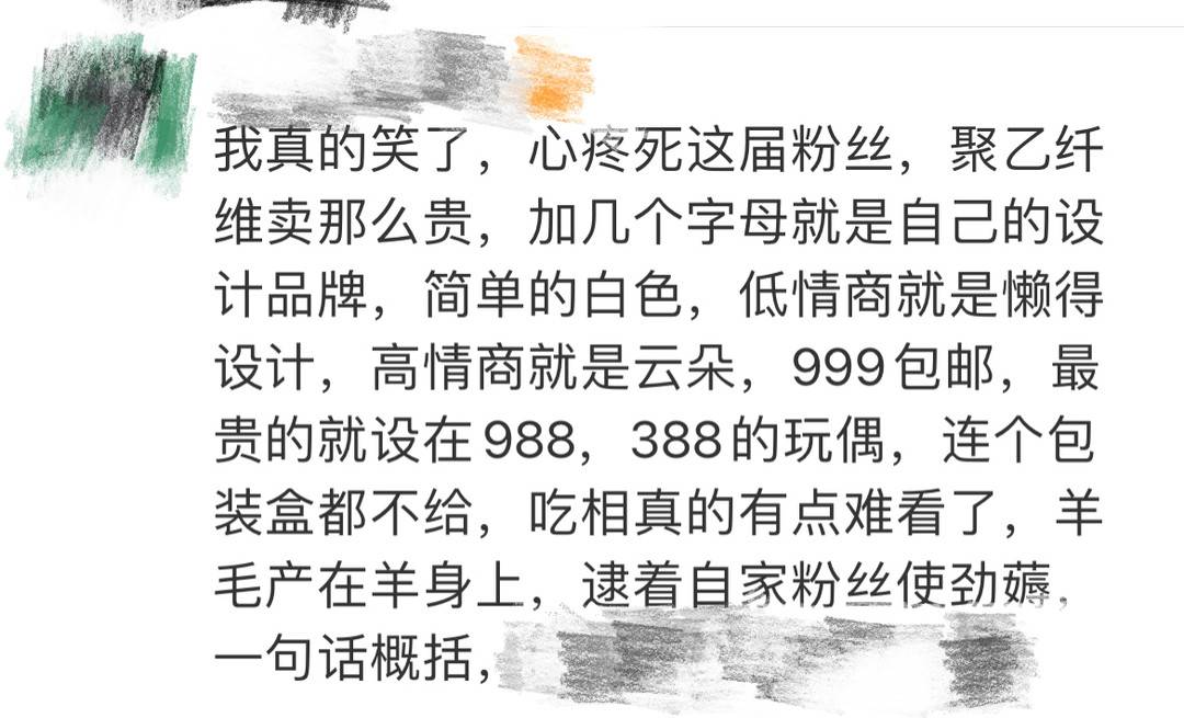 对于这样的一个年轻品牌,有着对美好生活的愿望,王小灿呼吁大家从消费者的角度,包容地来看这件事:“做潮牌也好,做其他的也好,对于一个刚开始的品牌,出这些问题都是很正常的。但服装行业是一个非常专业系统的产业,它横跨了第一、二、三产业,并不是画个图设计一下,再生产就行了。我觉得应该允许大家做各种新的尝试。从品牌角度出发,应该考虑到产品本身价值,以及品牌价值、文化价值三个方面。”