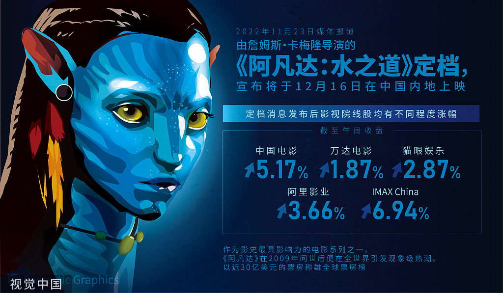 【环球时报综合报道】年度大片《阿凡达:水之道》(《阿凡达2》)16日在中美公映。自2009年首部《阿凡达》上映之后,导演詹姆斯·卡梅隆又一次把他的“潘多拉星球”呈现在银幕上,其逼真的视觉特效、植根于种族和家庭情感的故事,以及对当下电影产业发展的意义,都可以体现在第一波抢先观影的媒体和影迷的口碑之中。