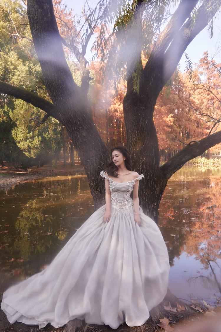 15日,白鹿最新活动造型图曝光。她身穿公主裙游走在林间,梦幻感十足,大秀美好身材。