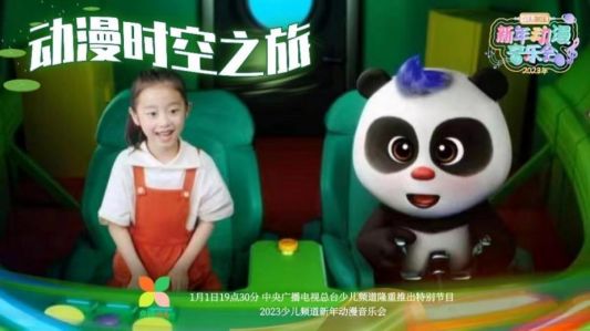 当“大头儿子”“美猴王”等总台经典动漫IP再现掀起“青春风暴”的同时,作为《2023年少儿频道新年动漫音乐会》“跨时空之旅”的领衔,熊猫和和将与小女孩一起乘坐着动漫飞船穿梭在时空隧道,引领小朋友和观众们跨时空交互,与经典动漫IP相遇,并以当下繁荣的时代背景对话仍然鲜活的国民记忆,致敬经典,献礼动漫。