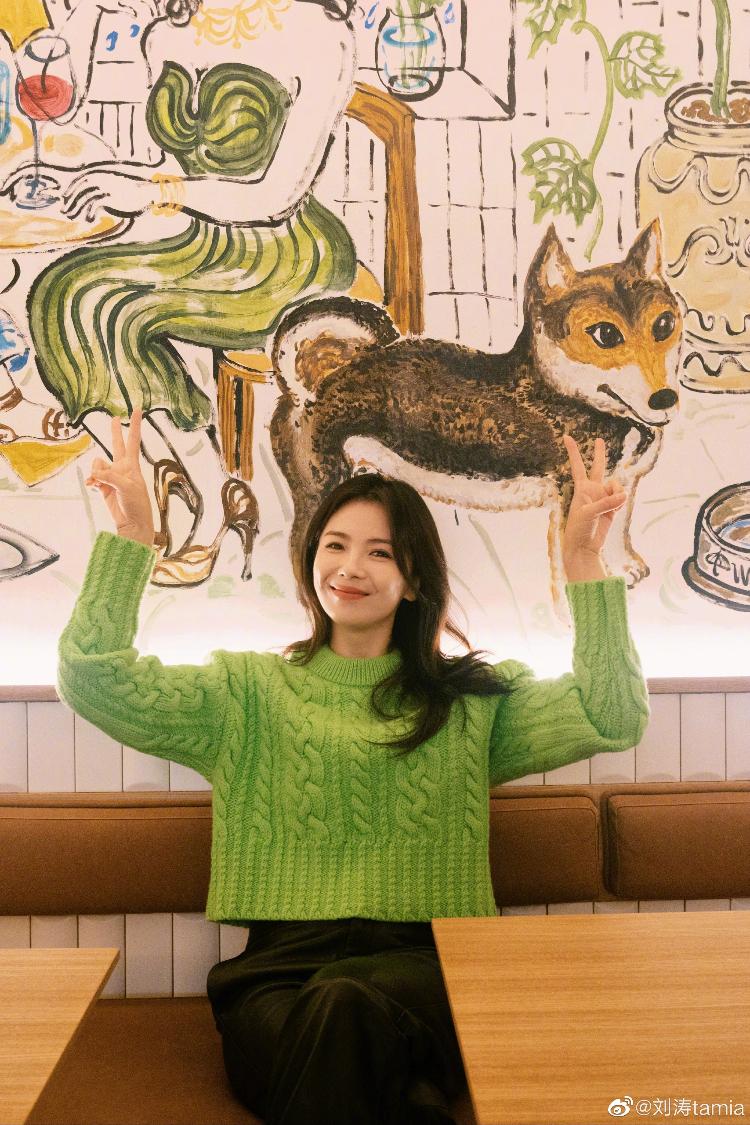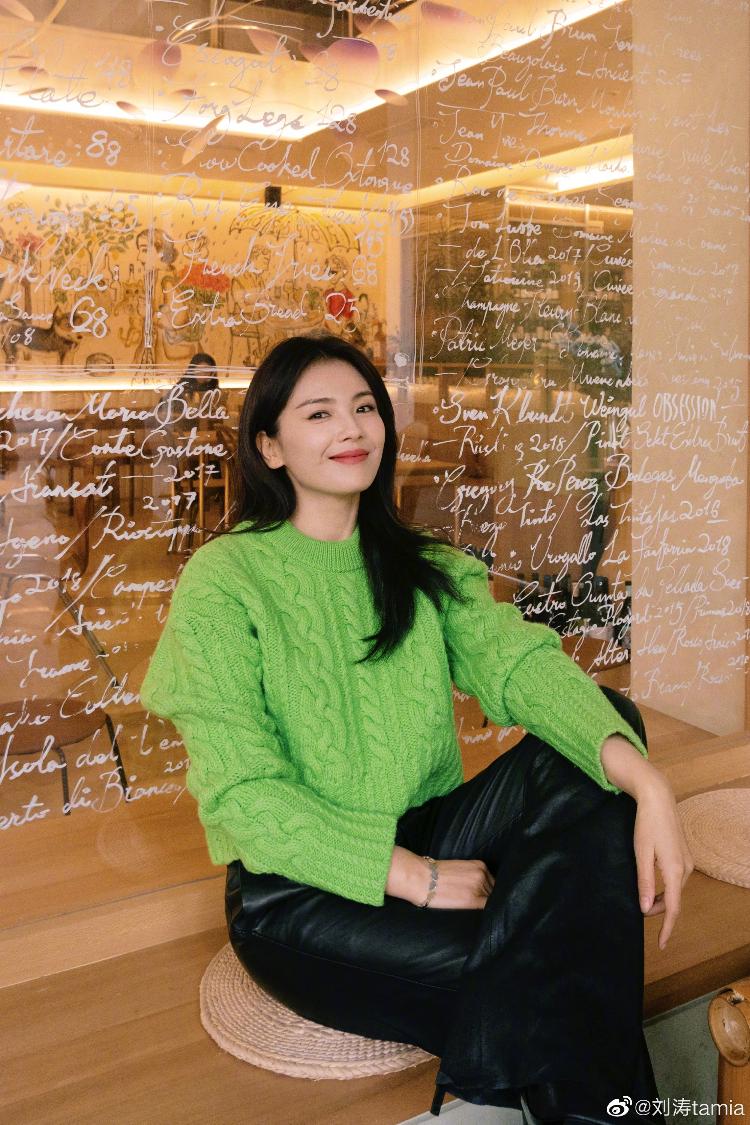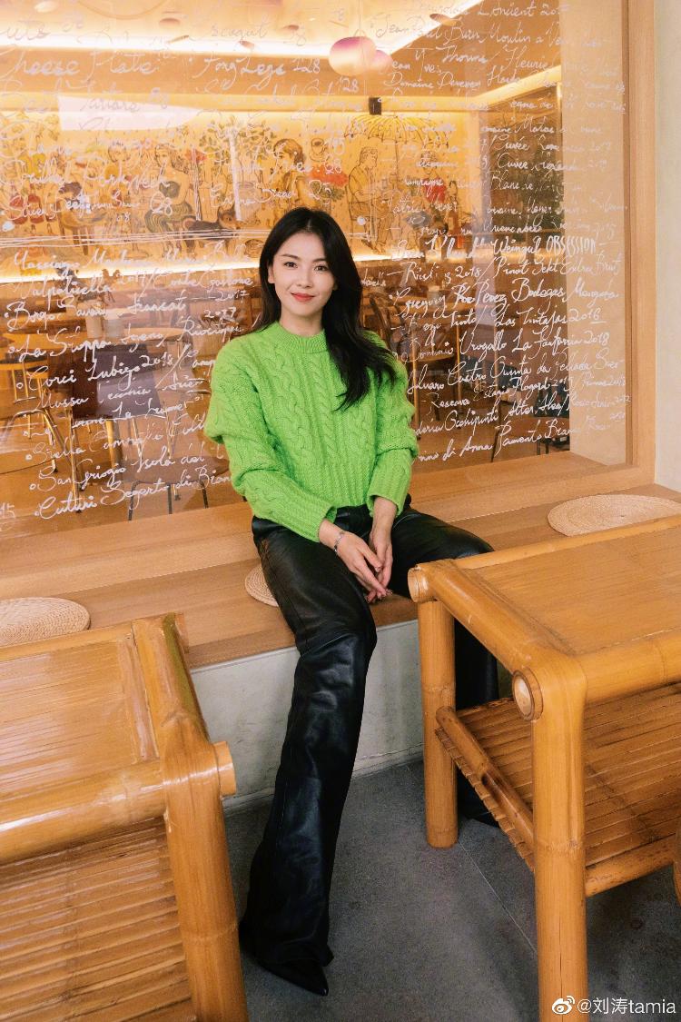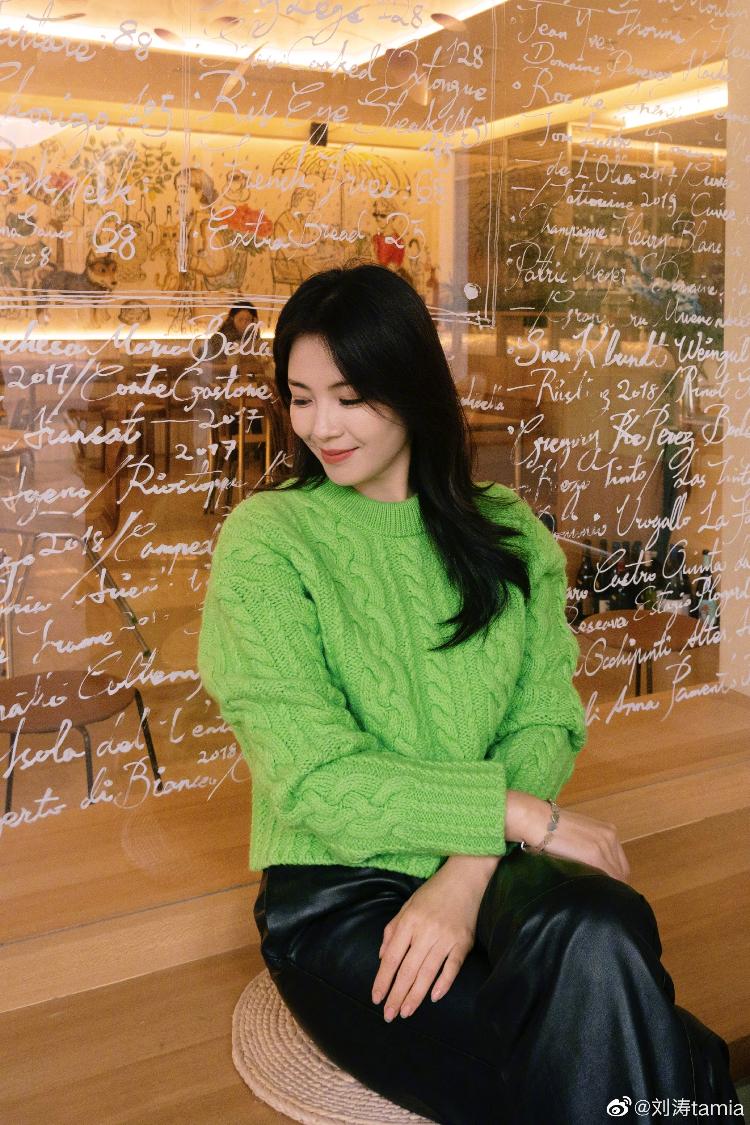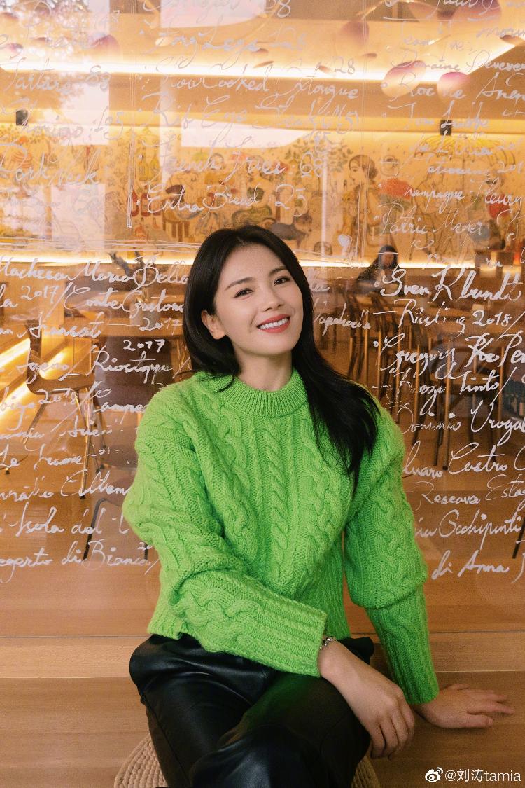 刘涛在个人社交平台晒出了一组新年随拍,并向网友们送上新年祝福,她披散长卷发,身穿绿色毛衣搭配黑色皮裤,双手比耶灿笑可爱满分。