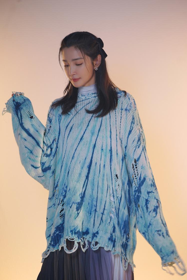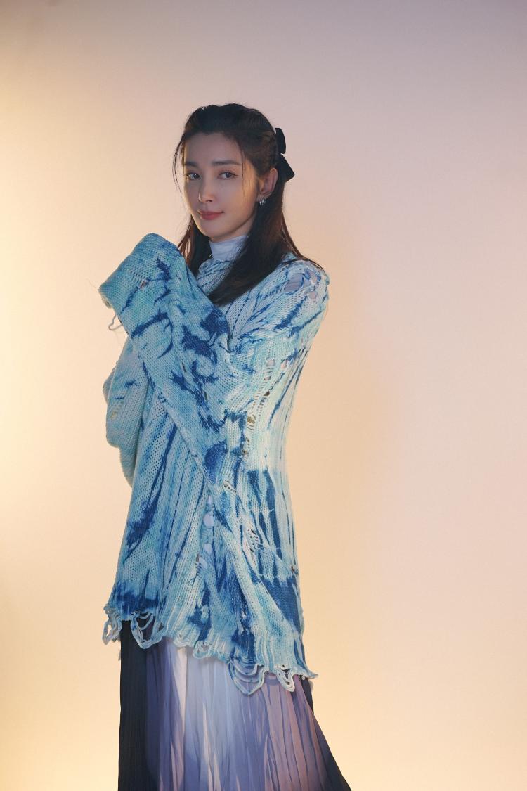 工作室晒出了一组李冰冰的美照,她半扎长发,身穿蓝色毛衣搭配长裙,对镜头微微一笑温柔十足,五官精致颜值超高。