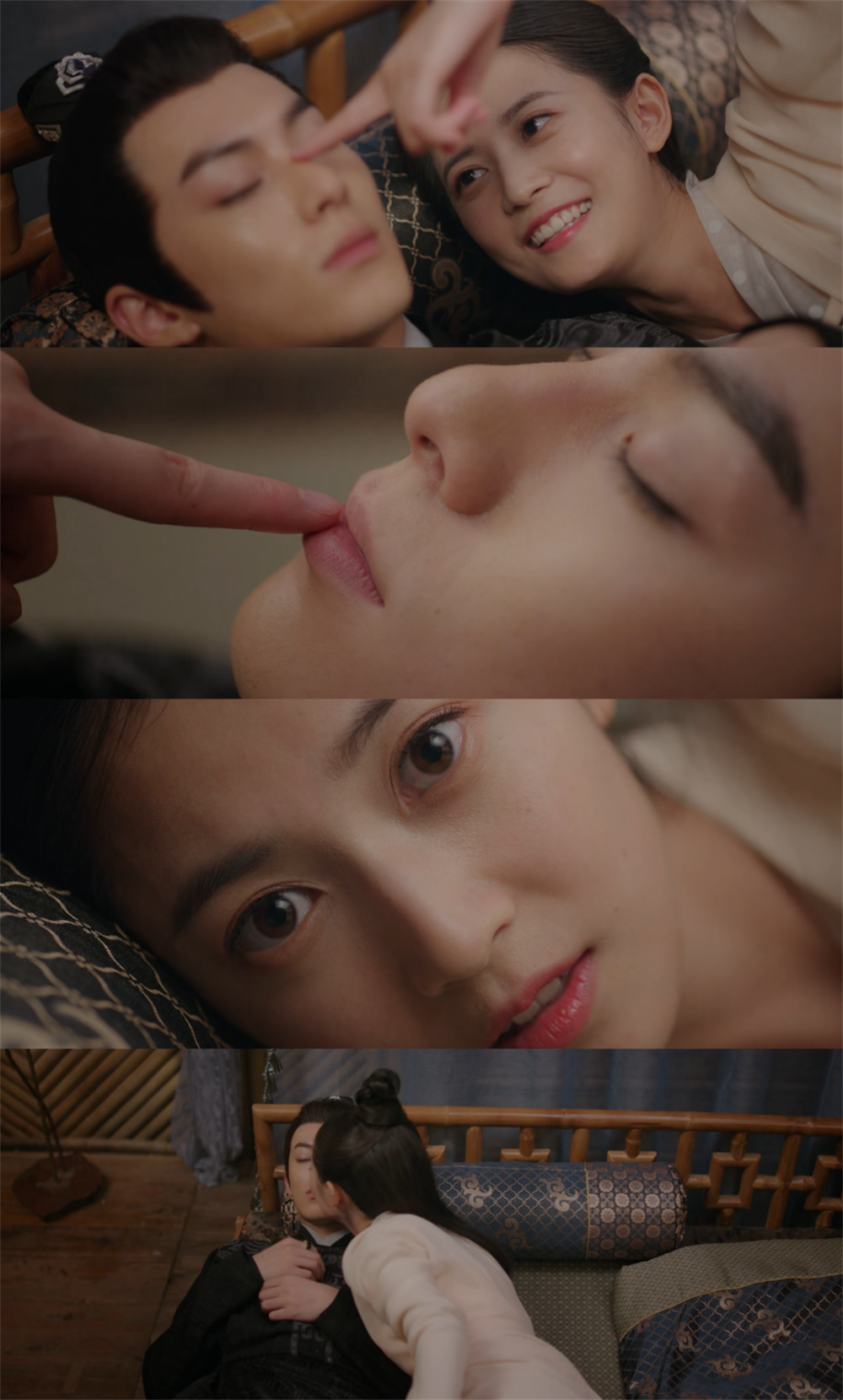 第五集肖铎已经莫名对步音楼有好感了,之后就是一路好感叠加,一路情窦初开(看言情话本、给步音楼送纸鸢什么的),外加各种吃醋(比如看到皇帝跟步音楼在一起就生气)。最近剧情来到了两人一起坐船前往西蜀,双箭头的感情线已经明朗,各种拥睡、偷吻的甜蜜戏份都来了。get到“甜”的观众不可自拔,get不到的心如止水。