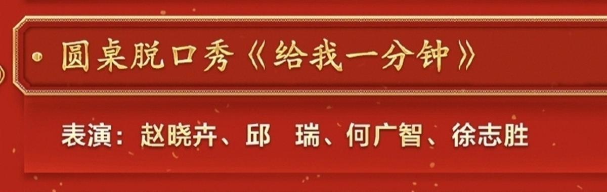 除却沈腾,2023兔年央视春晚的语言类节目将在今晚刮起新风——凭借《脱口秀大会》爆红的脱口秀演员何广智、徐志胜、邱瑞、赵晓卉将齐聚一堂,共同表演圆桌脱口秀《给我一分钟》;而在《一年一度喜剧大赛》第一季里有过精彩表现的周铁男、闫佩伦将与金靖合作,带来小品《对视50秒》。