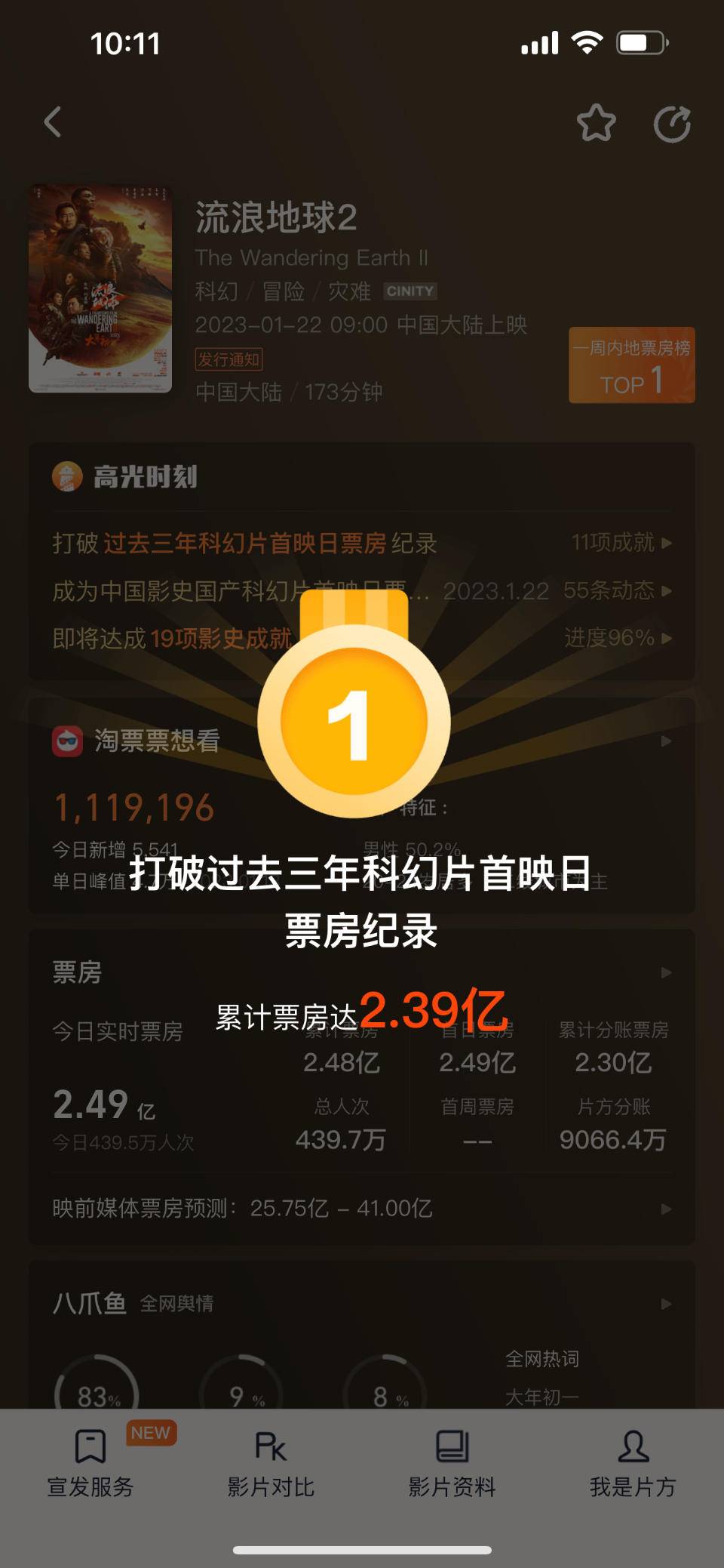 2023电影春节档于今日拉开帷幕,科幻电影《流浪地球2》正在热映,该片上映首日票房已经突破2亿,打破了过去三年科幻片首映日的票房纪录,故事与视觉比第一部更燃更爽,点燃了春节档观众的热情。
