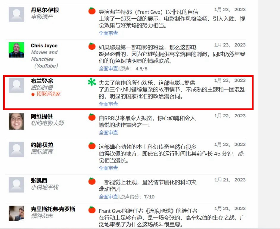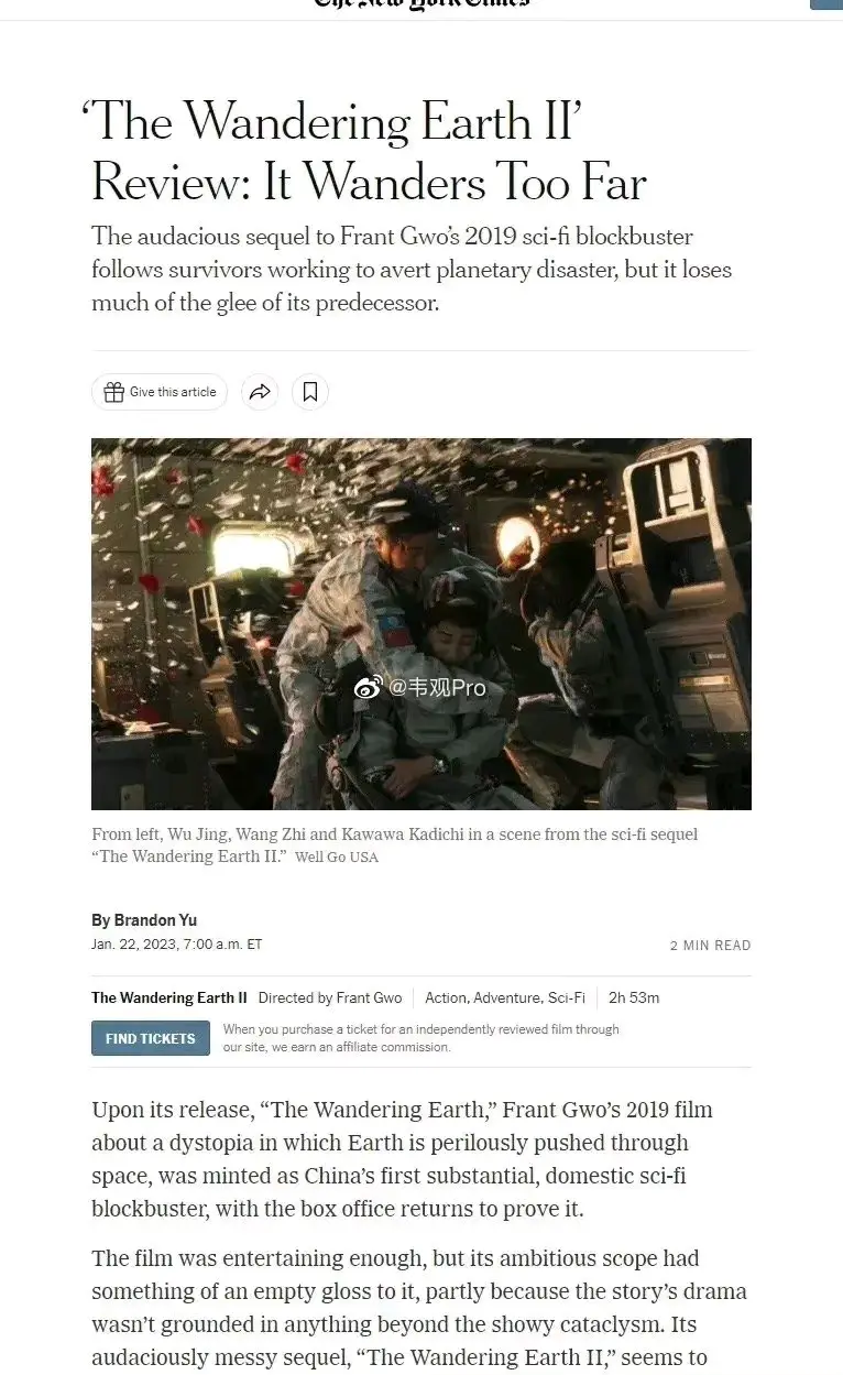 原标题:他急了!《纽约时报》评《流浪地球2》可笑愚蠢,只配30分!