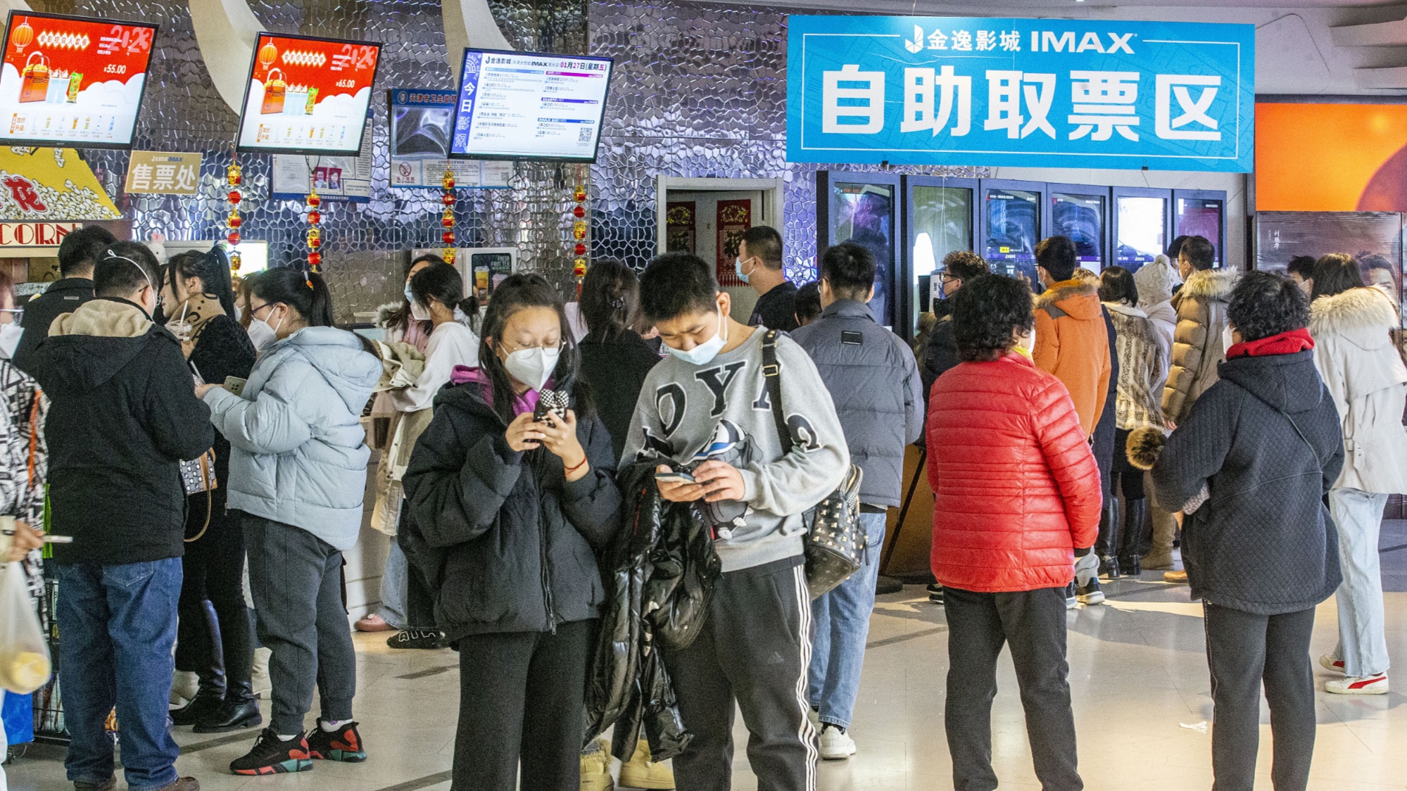 春节期间,消费者在影院购票观影。(图片来源:CFP)