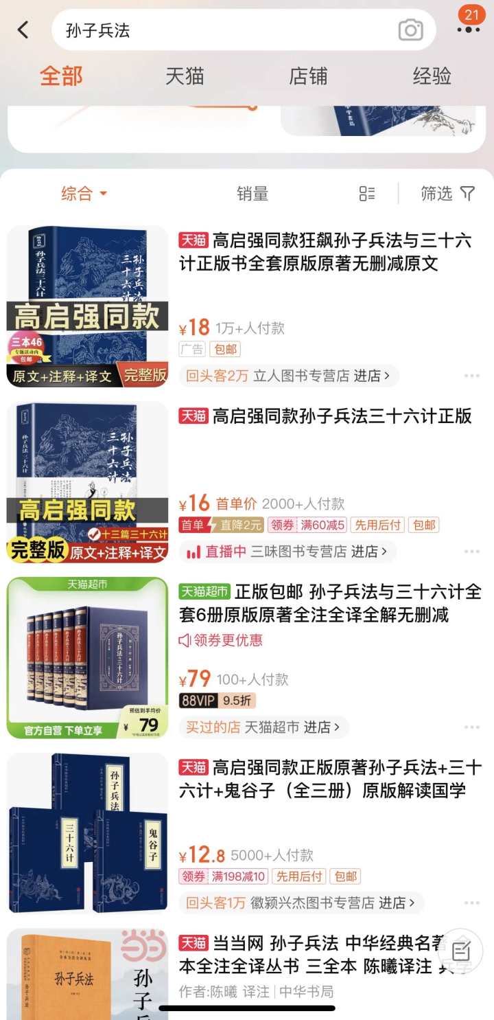 没想到,一时间《孙子兵法》登上了各个图书网站的热销榜。