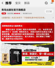 (图片:青岛出版社官方旗舰店再次发布公告称,首批《狂飙》小说已售馨)