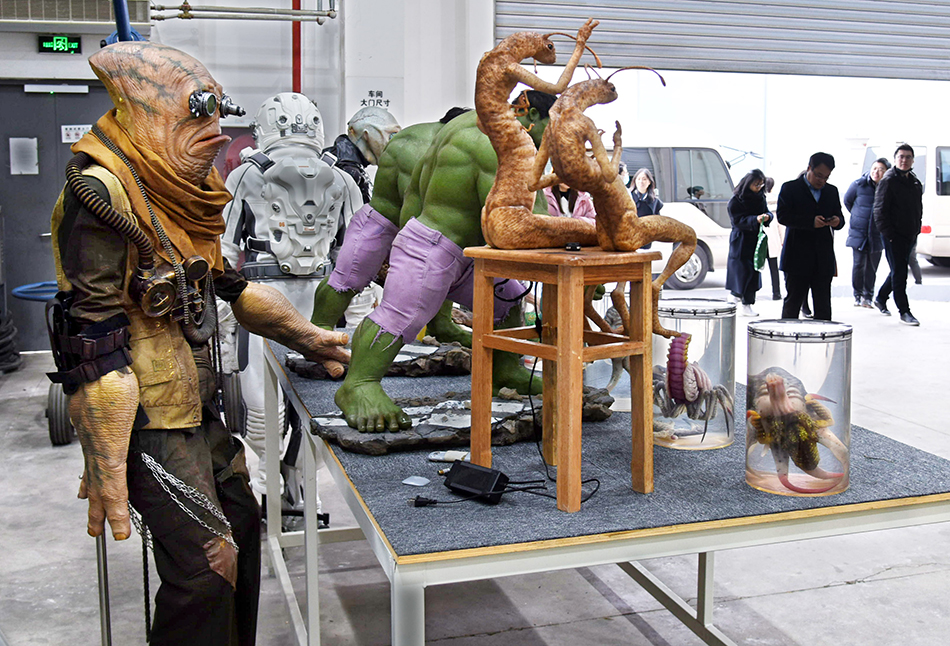 2023年2月8日,访客在青岛东方影都影视产业园置景车间内参观。