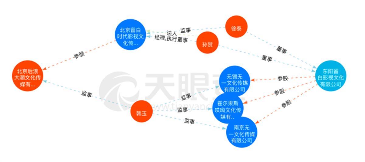 同时,股东信息显示,北京后浪大潮文化传媒有限公司由北京留白时代影视文化传播有限公司、天津市武清区乘风起势科技合伙企业(有限合伙)分别持股51%、49%。而极目新闻记者在天眼查网站查询后发现,《狂飙》出品方之一的留白影视,其两位董事则分别担任了北京留白时代影视文化传播有限公司的法人及监事。