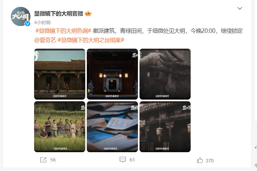 大皖新闻讯去年,以歙县2020特大洪灾及疫情之下高考为题材的电视剧《大考》,让黄山市特别是歙县火了一把。2月9日起,以皖南徽州(歙县)故事为题材的古装悬疑电视剧《显微镜下的大明》在爱奇艺热播。没播前,就已有数百万人预约,电视剧官微也强力宣推,在网上引起很多人对该剧的极大关注。