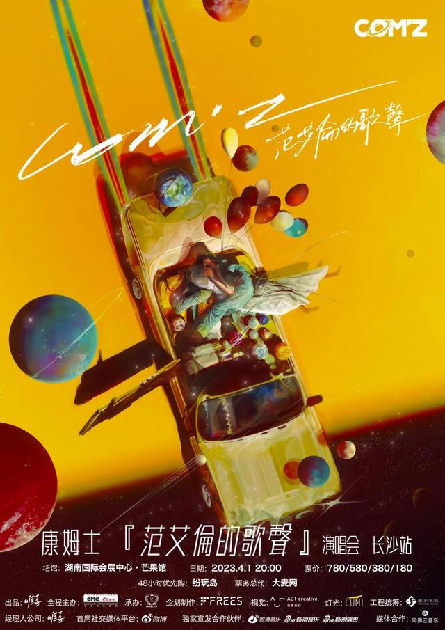 2023,乐队即将解锁全新成就 —— 首次开启体育馆巡演。康姆士「范艾伦的歌声」巡演,今年会走过长沙、杭州、广州、厦门、成都......等15座城市,这是全新的突破和挑战,更是值得期待的进化与升级。区别于小型live house演出的单一性,体育馆将提供更大的空间,更多的可能性,以及更丰富的音乐想象空间。前方惊喜随机掉落,你只需尽情填满期待。
