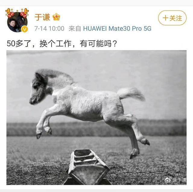发文同时,他还配了一张图,图上是一只正越过食槽的小马。当时,这条内容也被网友解读,于谦即将离开德云社。不过后来的事实证明,当时于谦是想要尝试接触更多的工作,也是拓展自己的生活空间,并不是网友们以为的跳槽。有网友评价称,“毕竟跟德云社和郭德纲这么多年的感情,也不是那么容易割舍掉的。”
