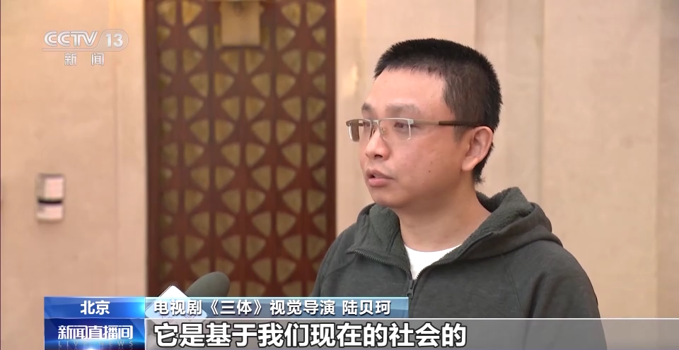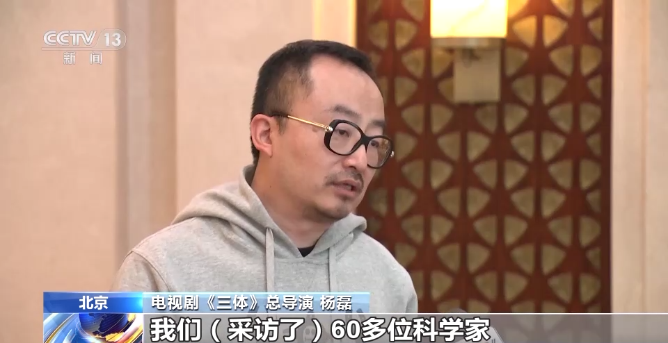 电视剧《三体》总导演 杨磊:《三体》这本书它所谓硬壳科幻就是基于科技本身,科技的幻想。所以我们也做了大量的采访,我们采访了60多个科学家,到中科院,包括到国家纳米科学中心,根据采访这些内容,我们如何把它呈现。