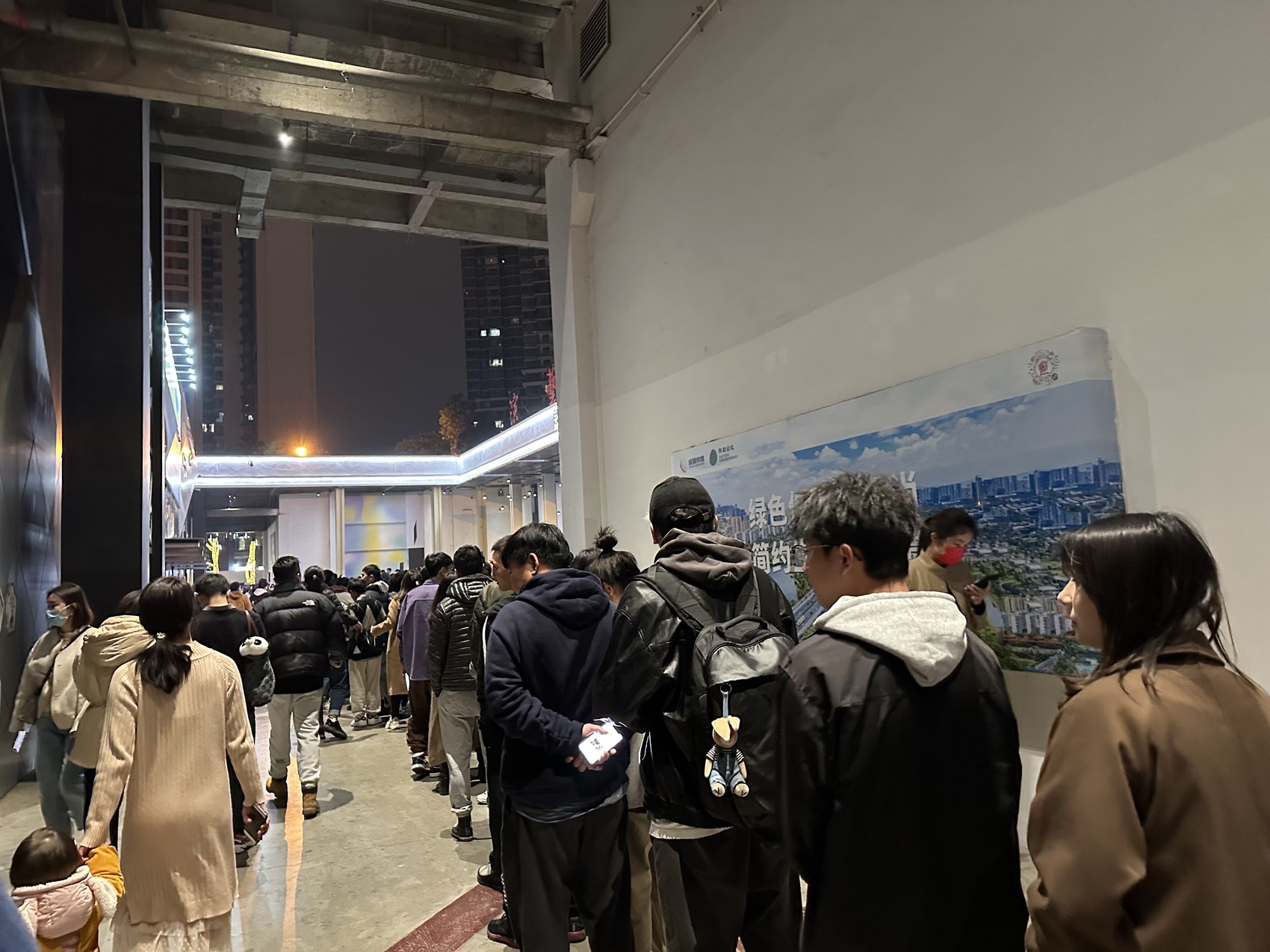 2月25日晚,在成都东区超级音乐现场外,乐迷张佳琦和朋友一起排队准备看演出:“很久没看演唱会了,老狼是我和同学上学时就很喜欢的歌手,这次几个老同学特地约了一下,太想念(音乐)现场了。”