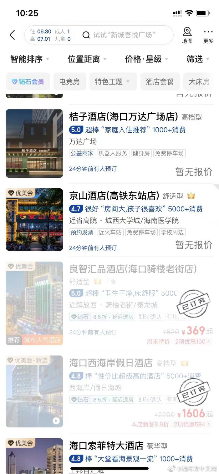 受演唱会影响,周边酒店的价格也在不断上涨。据了解,在海口站官宣后,海口地区的机票搜索量增长了175%,而酒店搜索量更是增长了2倍。可能是见到了市场这么量,海口地区的酒店价格纷纷涨价,最高的翻了4倍,普通酒店从200左右涨到了800多。