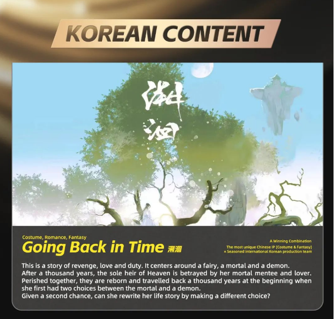 作为国内头部影视制片公司,带着国产故事和演员们走向国际市场原本是一件皆大欢喜的好事,然而在3月16日,柠萌影视国际片单发布计划中的一部影片却引起了不少网友的争议。在柠萌影业发布的内容中,其表示“将联手具有国际视角的韩国制作团队,打造古装奇幻作品Going Back in Time(《溯洄》),让古装成为文化符号,在作品中融入更多元素,建立新的文化格局。除《溯洄》外,《亲爱的阿基米德》也将在韩国播出。”《溯洄》讲述的是仙女被男人背叛,失去了自己的国家,在绝望之际重回千年之前,得到了人生重来的机会后,仙女决心向男人复仇并守护国家。根据剧情简介和发布会信息,网友推测《溯洄》有可能改编自网文作家画七的仙侠小说《和男主同归于尽后》,在晋江文学城连载并完结,在晋江的仙侠小说里人气非常的高。