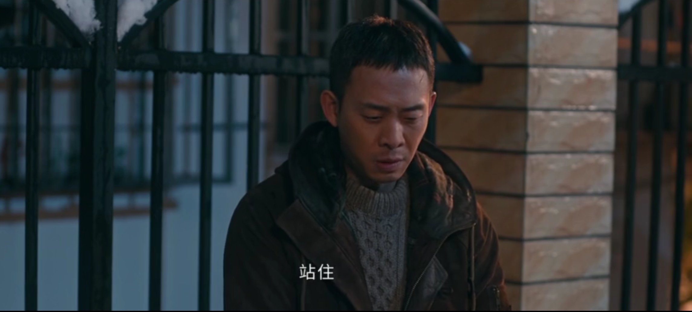 残雪遍地,夜色温柔。张译已经开始撒娇了,连说了7遍“站住”。也许有人觉得我要黑张译了,真没有,在我写这个稿子的时候确实是有这个动机的。但是我回看了一遍重数“站住”次数的时候,突然觉得这5个“站住”确实是有细节的。没错,变化就发生在“一秒钟”之内。张译演技的出色不是爆发力,而是细节表现力,他演不了爆裂刑警。