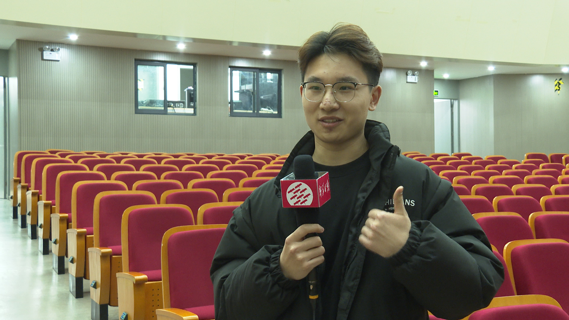 面对着镜头,这群20岁不到的年轻学子侃侃而谈自己的观后感。而演出时坐在第一排的建筑工程技术专业的张卓鑫同学和工程造价专业的姚惊龙更是激动不已。