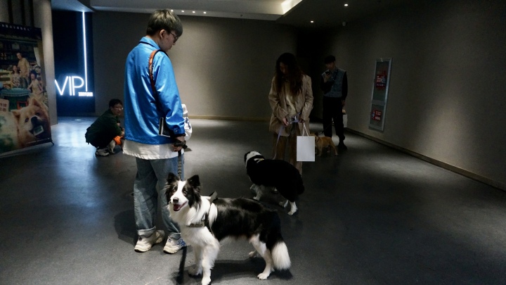 一直到影片字幕走完,场灯亮起,主人们稍稍平复了一下心情,清理了垃圾和宠物毛发后,带着狗狗走出了影院。