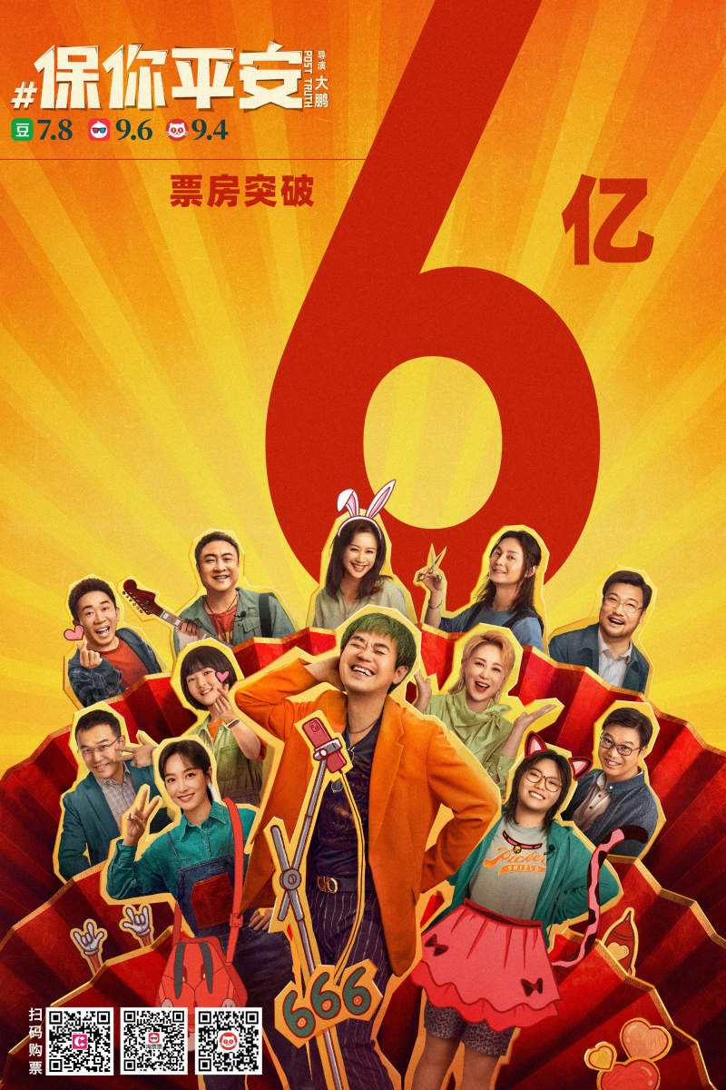 新京报讯4月4日,电影《保你平安》发布海报,庆祝该片票房突破6亿。官方微博配文称:“感谢1423万观众,温暖并进,何其有幸,愿保持热爱,美好常在!”