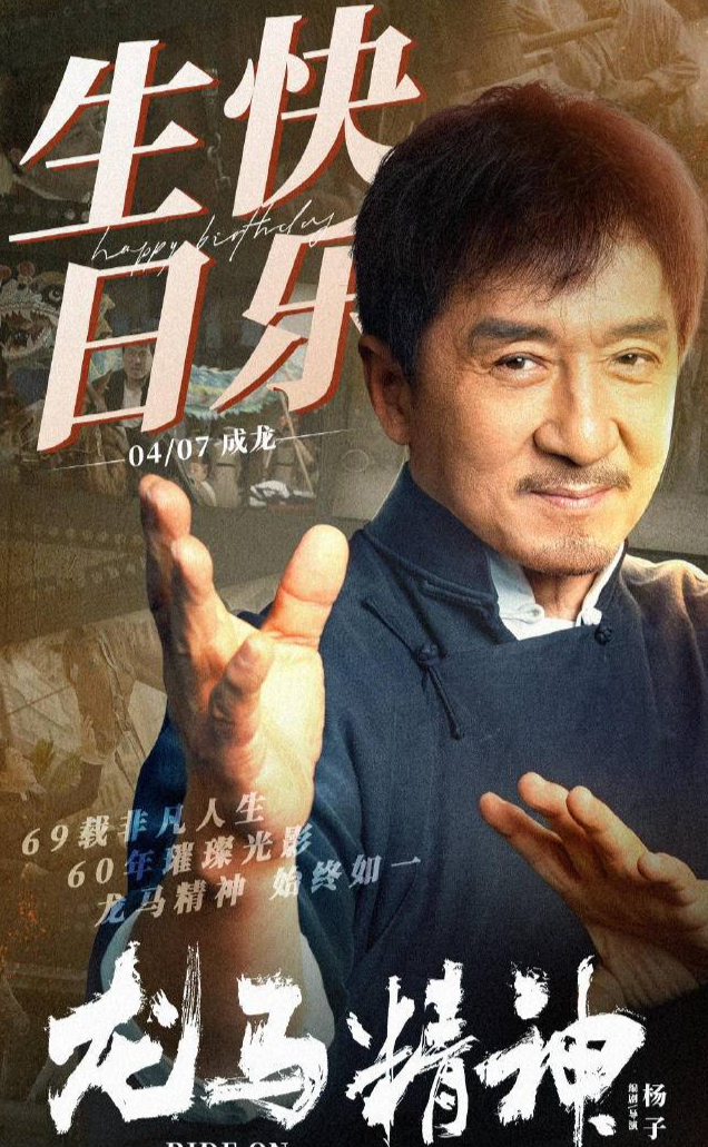 4月7日,成龙主演电影《龙马精神》上映,恰逢成龙69岁生日。刘德华录制视频为成龙清唱完整的生日歌,送上最诚挚的祝福;周杰伦现身录制视频成龙送上祝福。