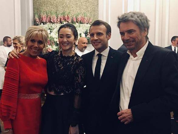 先是这年3月底,马克龙在巴黎爱丽舍宫举行中法外交晚宴,巩俐和雅尔携手亮相↓↓