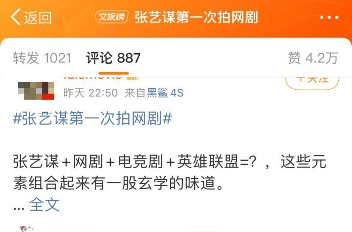 张艺谋也进军网剧了,要拍的还是《英雄联盟》,一石激起千层浪,网友是一边期待一边诧异,因为此前,张导不仅自己不拍剧,还会劝“谋女郎”不要拍剧。
