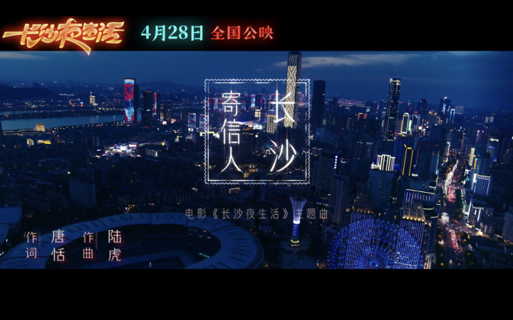 张远、陆虎、王栎鑫的演唱同样饱含深情,令人动容,富有磁性的声线将电影中的故事娓娓道来。外卖小哥,大排档老板,脱口秀演员,摩天轮管理员……《寄信人长沙》不仅是对每一位为生活拼搏的普通人的温柔抚慰,也唤起了每一位异乡游子对故土的热爱与思念,更唱出了长沙这座城市独有的温度。电影将于4月28日五一假期上映。
