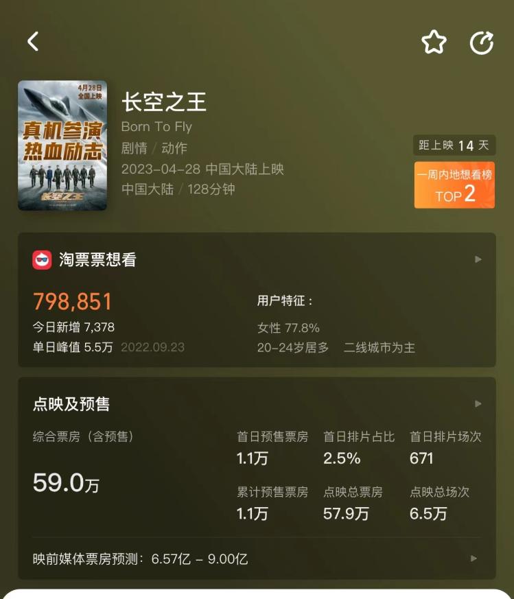 从目前定档的影片来看,关注度最高的分别为阿里影业、博纳影业及中国电影等公司出品发行的《长空之王》,淘票票、猫眼及中国电影等公司出品发行的《人生路不熟》,联瑞影业、中国电影等公司出品发行的《惊天救援》,最高检影视中心、猫眼及文投控股出品发行的《检察风云》,这四部影片将先后在4月28日-29日上映。