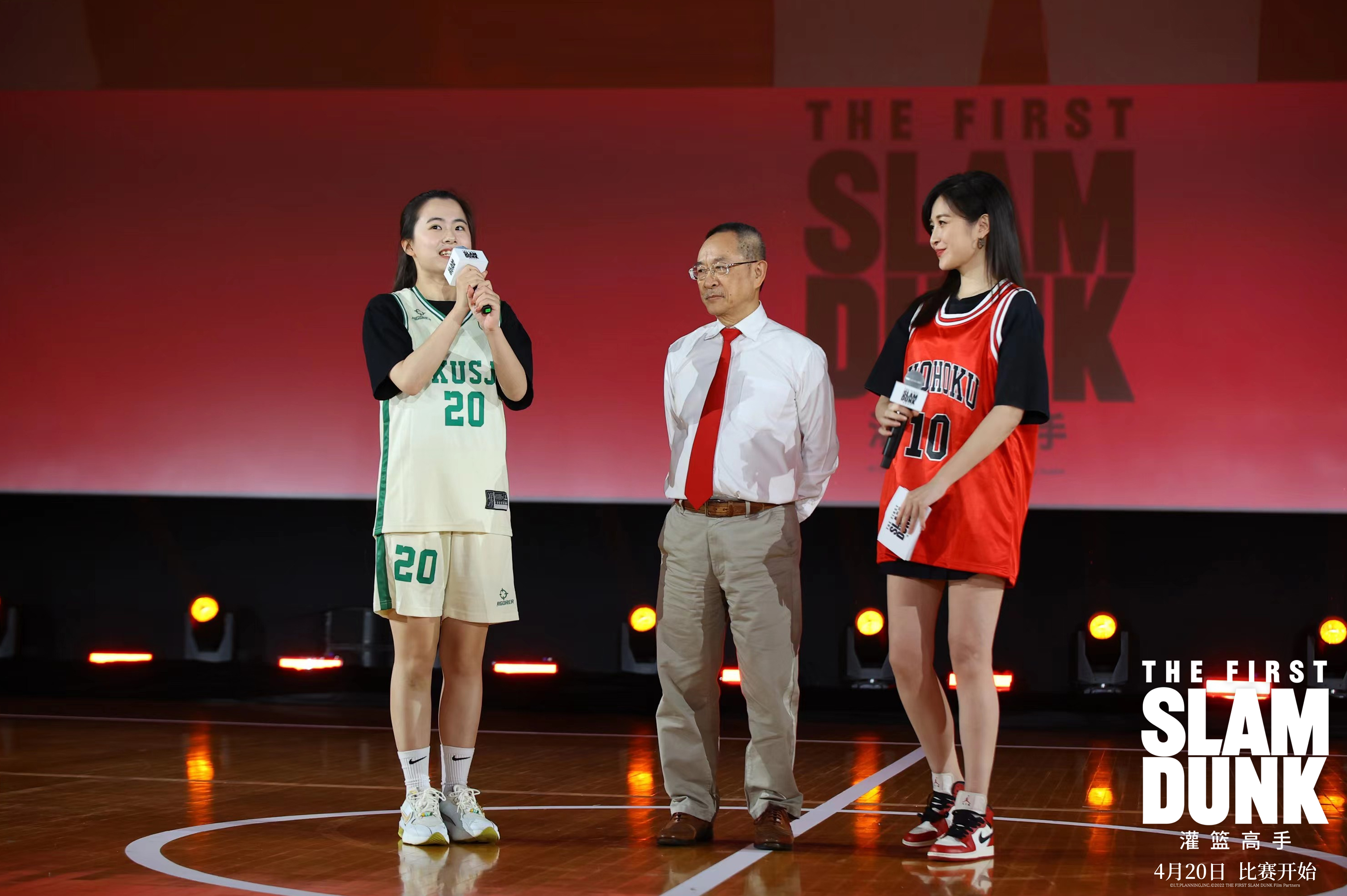 来自日本的“10-FEET”乐队在电影放映后,献唱了电影版片尾曲《第ゼロ感》,而后两代《灌篮高手》配音演员同台现身。安西教练的配音演员孙中台已是两鬓斑白,他直言这部电影的配音持续了一个多月,“在我近五十年的配音生涯中实属罕见。”