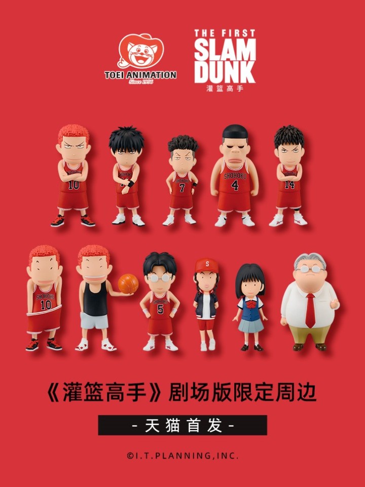 上午10点,东映动画在天猫旗舰店首发上线了10款《灌篮高手》剧场版周边限量新品,包括湘北高中手办、湘北队服球衣、棒球帽等。