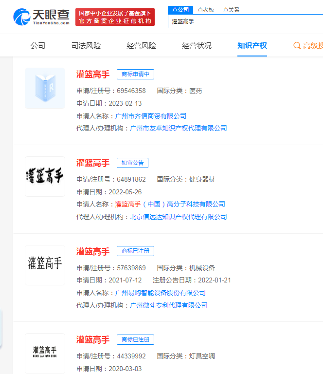 值得一提的是,还有多家企业用“灌篮高手”命名,如灌篮高手(中国)高分子科技有限公司、福建省灌篮高手体育用品有限公司、遂宁灌篮高手篮球俱乐部等。此外,有多家游戏公司登记了“灌篮高手游戏软件”著作权。