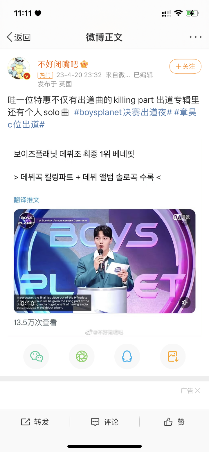 昨日(4月20日),韩国Mnet电视台选秀节目《BOYSPLANET》迎来决赛成团夜。其中,中国福建小伙章昊以1998154票,获得《BOYSPLANET》节目第一名。这也是韩国选秀以来,第一个在韩国C位出道的中国人。